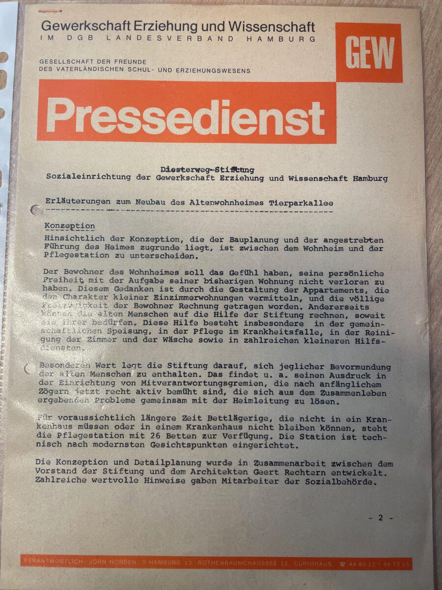 Richter: So war das Anliegen also nur schmal legitimiert, aber auf jeden Fall gut begründet. Denn damals war doch der Mangel an gut ausgestatteten, gepflegten, kompetent geführten Alten- und Pflegeeinrichtungen eines der großen sozialen Probleme. Daher konnten die wenigen Abstimmenden sicher sein, für alle Kolleginnen und Kollegen richtig mitentschieden zu haben. Und dass die Durchführung nicht nur „irgendwie“, sondern zügig und fachgerecht funktionieren würde, glaubte der GEW Vorstand unserer gemeinnützigen Sozialeinrichtung, der Diesterweg-Stiftung, zutrauen zu können?