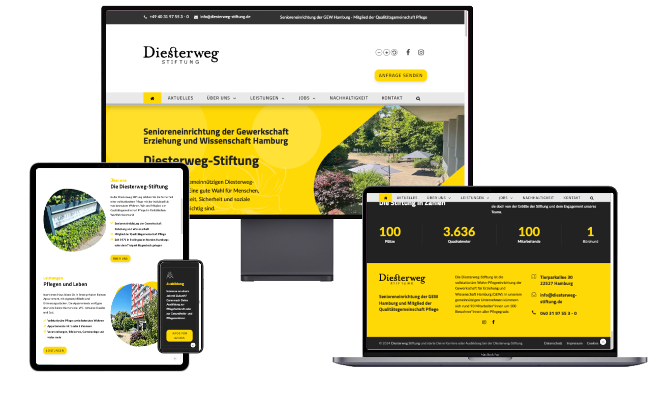 „Alles Neu macht der …“ – September. Denn wir haben fleißig an unserer neuen Internetseite gearbeitet. Mit vielen neuen Funktionen, Infos zur Historie, einer großen Galerie, einem Veranstaltungskalender und ganz viel Wissenswerten rund um die Diesterweg-Stiftung versorgt sie aller Bewohner:innen und Angehörige mit wichtigen Informationen.